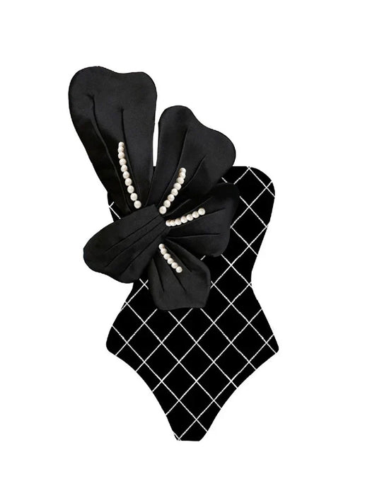 Pearl Floral Black Print Swimsuit Set